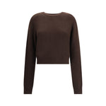 The Brown Cashmere Bad Romance Sweater by Petar Petrov is an “ebony wood” brown Wool-Cashmere Knit Sweater with a relaxed drape. Featuring a ribbed crewneck, long sleeves, and rib-knit cuffs and hem, this minimalist design offers both sophistication and comfort, making it a versatile piece for refined, cozy outfits.