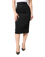 skirt showcases timeless elegance with its sleek black pencil-cut silhouette. Designed with a high waist and midi length, it offers a refined and feminine fit ideal for both professional and evening wear.