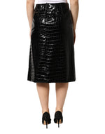 midi skirt features a croc-embossed faux-leather design with a flattering mid-waist silhouette. Sleek and modern, it combines bold texture with refined Italian craftsmanship for a standout statement piece.