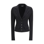 The single-breasted Jacket in stretch wool canvas by Dolce&Gabbana is an elegant and refined garment, characterized by a slim fit that enhances the silhouette. The peak lapel and side panels add classic, tailored details, while the long sleeves complete the design with clean lines. The stretch wool fabric ensures comfort and a flawless fit, making the jacket perfect for formal looks or for adding a touch of sophistication to contemporary outfits.