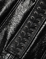 mini skirt is crafted from coated black nylon and accentuated with bold eyelet details. The sleek finish and structured design bring a contemporary twist to classic Italian style.