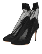 sock boots are crafted from black nylon stretch mesh for a snug, modern fit. The minimalist silhouette blends sporty functionality with refined Italian style.