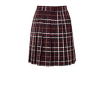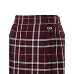 Dolce & Gabbana Bordeaux Pleated Tartan Skirt. In burgundy wool with a multicolored check, it features a covered zip closure at the back, pleats, and a side slit. Gold metallic logo on the front, no lining. Composition: 100% Wool