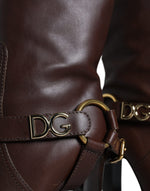 Dolce & Gabbana Brown Leather Gold Tone Logo High Boots Shoes