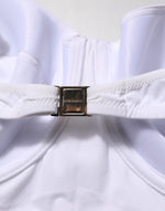 Gorgeous brand new, 100% Authentic Dolce & Gabbana one-piece swimsuit features a crisp white design with a padded balconette neckline. Offering both support and style, it creates a flattering silhouette perfect for sophisticated beach or poolside wear.