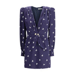 The Bow Patterned Short Dress by Alessandra Rich combines a playful design with refined details. Made with an all-over print of bows, it features a wide front neckline and padded shoulders that elegantly define the silhouette. Two jeweled buttons embellish the front, while the back zipper closure ensures a perfect fit. A feminine and contemporary piece, perfect for a sophisticated and characterful look.