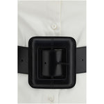 The poplin shirt mini Dress by Balenciaga reimagines the classic men’s shirt with a modern, feminine twist. Crafted from cotton poplin, it features a classic collar, front button closure, and long sleeves with adjustable cuffs. Darted sides enhance the silhouette, while the contrasting, adjustable, and removable belt accentuates the waist with a bold touch. A sleek, contemporary piece that combines tailored precision with urban sophistication.