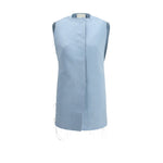 The sleeveless Dress by Stavnitser expresses a bold and contemporary aesthetic through an essential, graphic construction. The geometric neckline shapes the silhouette with modern precision, while the raw-cut hem running along the length of the dress adds a sharp and refined edge. The snap-button closure completes the piece with a clean and functional detail, reinforcing its minimalist identity.