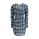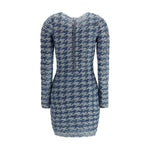The textured Halma Dress by Diesel is crafted from cotton in shades of blue and light grey, featuring a distinctive weave that enhances the silhouette. Designed with a crew neckline, long sleeves, and a concealed back zip closure, it offers a sleek, form-fitting shape that highlights the figure. A refined piece perfect for a modern and sophisticated look.