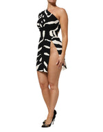 Gorgeous brand new, 100% Authentic Dolce & Gabbana dress. A striking and modern piece that exudes confidence, crafted from sleek black and white fabric with a one-shoulder design and daring high slit for a bold, elegant silhouette. Perfect for cocktail parties, evening events, or nights out where making a statement is key.