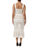 Gorgeous brand new, 100% Authentic Dolce & Gabbana dress. A timeless and elegant piece for special occasions, crafted from delicate white floral lace with a refined silhouette that exudes femininity. Designed in a sleeveless cut with a flattering midi length, it’s perfect for weddings, cocktail parties, or formal gatherings, offering classic Dolce & Gabbana romantic charm.