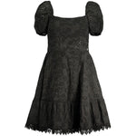 SHORT DRESS, SHORT SLEEVES, BOAT NECK, EMBROIDERY, LOGO