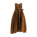 The Pinko strapless long dress has an elegant and feminine design. The side zip fastening ensures a precise fit, while the asymmetrical hem, shorter at the front, adds a touch of dynamism to the look. The adjustable bow on the front allows you to personalize the look of the dress, while the flared model slides delicately on the figure, creating a fluid and sophisticated movement.