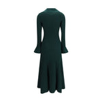 The keyhole knit midi Dress by Self-Portrait stands out for its bold interplay of structure and decorative detail. Crafted in a stretch knit that follows the body with ease, it features a sequence of keyhole cut-outs along the front, framed by refined button embellishments that add a jewellery-like accent. The exaggerated collar and softly flared cuffs enhance the silhouette with a sense of movement and personality, creating a piece that transitions effortlessly from day to evening.