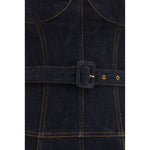 The denim flared midi Dress by Self-Portrait reimagines denim with a refined, feminine attitude. The fitted bodice is shaped by a sensual sweetheart neckline, flowing into a full flared skirt that adds movement and elegance. Street-inspired details like contrast stitching and an exposed back zip introduce a modern edge, while the dropped waist and removable belt subtly define the silhouette. A versatile piece, designed to transition effortlessly from day to night with flats or heels.