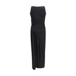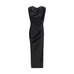The Long Fond Dress by Vivienne Westwood embodies the brand’s signature sculptural elegance and effortless fluidity. Crafted from lustrous satin, it wraps the bust and waist in refined draping that shapes a graceful column silhouette. The softly draped neckline and cinched waist highlight the feminine form, while the asymmetric hem and flowing gathers at the back create movement and depth. Finished with a concealed side zip that preserves its clean, minimalist lines, this piece is a timeless expression of Westwood’s artistry—where structure meets sensuality with impeccable finesse.