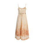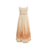 The Wanderlust Corset Midi Dress by Zimmermann from the Resort 2026 Collection captures the brand’s signature romantic and refined aesthetic. Crafted from 100% cotton in coral Toile print, it features a structured, boned bodice that defines the waist, enhanced by a rouleau tie belt that knots at the side. Adjustable straps, a gathered back with invisible zip closure, and side pockets offer both functionality and comfort, while the lined full skirt adds graceful volume and movement.