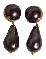 Dolce & Gabbana Gold Brass Black Pearl Clip On Dangling Jewelry Earrings