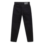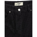 Black Fendi Logo Jacquard Jeans. In Black Cotton, five pockets, button and covered zipper closure, on back leather tag with engraved logo. Tone-on-tone allover logo printed all over the pants. Slim fit.