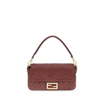 The Baguette Shoulder Bag by Fendi is made of pink calfskin leather with embossed FF pattern. It features magnetic flap closure with FF logo, tone-on-tone nappa leather interior with zipper pocket, and vintage gold-tone metal hardware. A versatile and timeless model to carry under the arm.