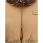 The Fendi cropped Down Jacket redefines winter outerwear with a contemporary elegance. Quilted padding and a high collar ensure warmth and protection, while the ribbed knit waistband in a tone-on-tone finish sculpts the silhouette with...