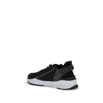 Fendi’s Flow Sneakers combine style and practicality in a distinctive modern design. Slip-ons with elastic laces and a side zipper, they are made of black FF jacquard nylon and embellished with black leather details, gray suede, and FF-patterned Lycra® trim. The wavy white rubber sole features carved F detail and a gray diagonal accent, while embossed Fendi Flow lettering on the heels adds a touch of character. An iconic model for those seeking comfort without sacrificing elegance.