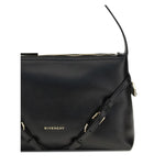 Voyou mini Shoulder Bag by Givenchy is a compact and sophisticated accessory made of smooth leather. Featuring a zippered closure, it features an adjustable strap for comfortable shoulder wear. Embossed GIVENCHY signature decorates the front, while the interior is embellished with the GIVENCHY Paris applique. GIVENCHY-engraved metal buckles and gold-tone metallic details complete the design. The main compartment offers essential space for daily essentials.