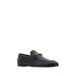 The leather Loafers by Gucci combine classic elegance with the house’s iconic details. The almond toe gives a refined line, while the leather block heel ensures stability and comfort. The front tray features the brand’s unmistakable brass-plated hook, giving the model an instantly recognizable touch. Completing the design is the contrasting logoed insole, a symbol of Gucci’s craftsmanship and style.