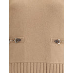 The Gucci Horsebit Sweater, crafted from premium wool and cashmere, features a ribbed crew neck and long raglan sleeves for optimal comfort. The front features faux welt pockets with elegant gold-tone inserts, while the ribbed hem and cuffs ensure a snug fit. The curved back adds a modern and sophisticated detail to the refined design.