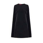 In black wool, two side welt pockets, hidden zip opening at the back. 60s-inspired model with round neckline and fabric pleat stitching on the sides. Tone-on-tone logo embroidery on the bottom.