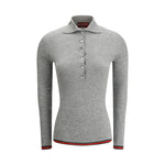 Gucci’s Cashmere Polo Sweater is an elegant and sophisticated piece, crafted from soft cashmere for superior comfort. The long-sleeved style features a classic collar and tone-on-tone buttons on the front, adding an understated touch of sophistication. The ribbed design lends structure and lightness, while the iconic colored bands on the hem and cuffs recall the brand’s distinctive aesthetic.