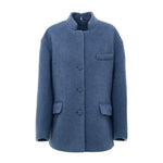 Gucci Light Blue Wool Caban Jacket. Semi-Korean collar, front button fastening, two flap pockets on the sides and a breast pocket. On the back, covered button detail and Gucci logo metal button. Inner lining, regular...