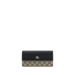 Leather Wallet by Gucci, front closure by leather magnetic flap, all-over printed iconic GG Supreme logo, metal plaque with iconic brand logo applied on the front, interior bill compartment, card slot, zippered coin pocket for...