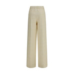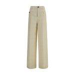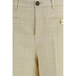 The cotton tweed check Pants by Gucci combine classic elegance and modernity with their sophisticated style. The ivory cotton tweed fabric with a check pattern gives a refined and versatile look, perfect for any occasion. The metal GG Interlocking GG button, an iconic symbol of the fashion house, adds a distinctive touch. The model is lined to ensure comfort and a perfect fit. The front pockets and button and zipper closure complete the design, making these pants a must-have for those seeking a chic and contemporary look.