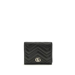 The GG Marmont Wallet by Gucci is an elegant and functional accessory made of matelassé nappa leather with a pinkish beige chevron pattern. The design is embellished with light gold-tone hardware and the famous double G on the front. The interior is organized with five card slots, an open pocket, a zippered pocket and a bill compartment, while the snap-button closure provides security and practicality.