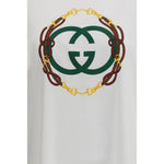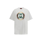 The cotton jersey T-shirt by Gucci expresses an iconic graphic language through the GG Cross print, enhanced by embroidered bridle detailing that echoes the Maison’s heritage. The crew neckline and short sleeves shape a clean silhouette, while the regular fit offers a balanced blend of comfort and style.