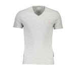 Embrace the epitome of sleek style with Guess Jeans’ cutting-edge, super slim short-sleeved t-shirt. Featuring a seductive “V” neckline, this gray top is accentuated with a striking logo application for an unmistakeable statement. Crafted from a premium blend of materials, it promises a contoured fit that highlights your physique with a flexible comfort. Perfect for a fashion-forward individual ready to showcase their bold taste.