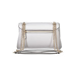 NOELLE BAG, 2 CHAIN SHOULDER HANDLES, 1 EXTERNAL POCKET, 3 COMPARTMENTS, 1 INTERNAL POCKET, INTERNAL SPACES FOR CARD, CONTRASTING DETAILS, SNAP CLOSURE, LOGO