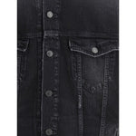 The Layered Jacket by Balenciaga redefines layering with a modern twist. The front panel is crafted in denim, while the back and hood are made of soft sweatshirt fabric for a relaxed contrast. It features a classic collar, button-front closure, two welt pockets, and two chest patch pockets. The Balenciaga logo emblazoned across the back adds a signature finishing touch.
