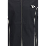 The J-Hives windbreaker Jacket by Diesel delivers a technical, urban aesthetic designed for modern everyday wear. Crafted from durable CORDURA® fabric with a breathable waterproof membrane, it features a regular fit and mesh lining. The design is defined by contrast piping, a front zip closure, two zip pockets and drawstring adjustments at the hood and hem. An Oval D logo patch on the chest completes the piece with Diesel’s unmistakable signature.