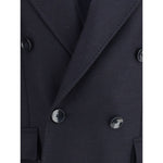 The Gi Capri Coat is a refined double-breasted design crafted from pure virgin wool, featuring classic lapels and two front flap pockets. A fabric band on the back provides a distinctive and modern touch, elevating this timeless piece with a note of understated sophistication.