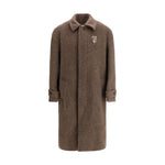 The Journey Single-breasted Coat by Golden Goose in wrinkle-effect Wool blend offers a contemporary take on a timeless classic. Featuring a front button closure and a decorative bronze floral pin on the chest, it combines sophisticated elegance with distinctive details for a refined, modern look.