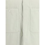 The padded Jacket Laminar by Herno crafted in ivory nylon, enhanced by a logo label on the back. It features a classic collar, button closure, two chest pockets, and two side seam pockets. The adjustable buttoned cuffs and drawstring hemline ensure a customizable fit. Fully lined interior with a patch pocket. A refined yet functional piece, perfect for elegant winter layering.