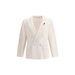 The double-breasted knit Jacket by Lardini combines artisanal tradition with contemporary refinement. The design with peak lapels, four metal buttons, and flap pockets defines a balanced and sophisticated silhouette, enhanced by side vents that offer ease of movement. Crafted from an exclusive fabric with flat rib stitch and 12-gauge finish, it features a carded yarn certified RWS and free from mulesing — a testament to quality and ethical craftsmanship. A piece that embodies conscious elegance, where knitwear becomes a true expression of sartorial style.