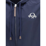 Moschino’s Waterproof Jacket combines functionality and urban style. Featuring a hood and front zipper closure, it has an elasticized hem and cuffs for optimal protection. The two side welt pockets add practicality, while the stitched logo on the front signs the garment with a distinctive touch.