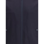 Thom Browne’s wool Jacket features a ribbed collar and convenient front zipper closure, enhancing its modern and comfortable fit. The design is complemented by two side welt pockets, ideal for everyday functionality, while ribbed cuffs and hem ensure a snug fit. The iconic element of the model is the horizontal band placed on the left arm, a distinctive detail that recalls the brand’s contemporary elegance.