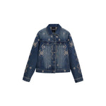 Discover the Desigual CHAQ_ESPEJOS 25WWED11 women’s jacket, a unique piece that blends classic denim tradition with modern decorative details. Made from 100% cotton, this jacket ensures comfort and breathability, making it ideal for any season. The design stands out with floral appliqués and geometric embroidery on the front, sleeves, and back, giving the garment a lively and original character. The front metal button closure and chest patch pockets add practicality and a casual-chic touch. Perfect for completing everyday looks or adding a distinctive flair to simpler outfits.