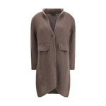 The semi-long Sweater by Ella is a warm and refined piece, featuring an elegant shawl collar and a front hook-and-eye closure. Designed with long sleeves and two front patch pockets, it combines practicality and comfort, making it ideal for a casual yet polished look.