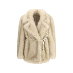 The Furry Rosaria Belted Coat by Sportmax features a regular fit with wide lapels and a tubular belt that ties at the waist. Crafted from soft, structured fabric, it envelops the figure with both elegance and comfort, defining the silhouette while maintaining ease of movement. Essential yet refined, the design embodies the brand’s contemporary aesthetic, turning an everyday piece into a subtle expression of sophisticated style.
