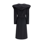The Danton Coat by Max Mara Studio is an elegant long wrap-style design crafted from luxurious cashmere. It features a generous hood, removable waist belt for a cinched silhouette, and practical side pockets. Fully lined for added comfort and structure, this refined piece blends warmth, softness, and timeless sophistication a perfect example of Max Mara’s signature elegance.